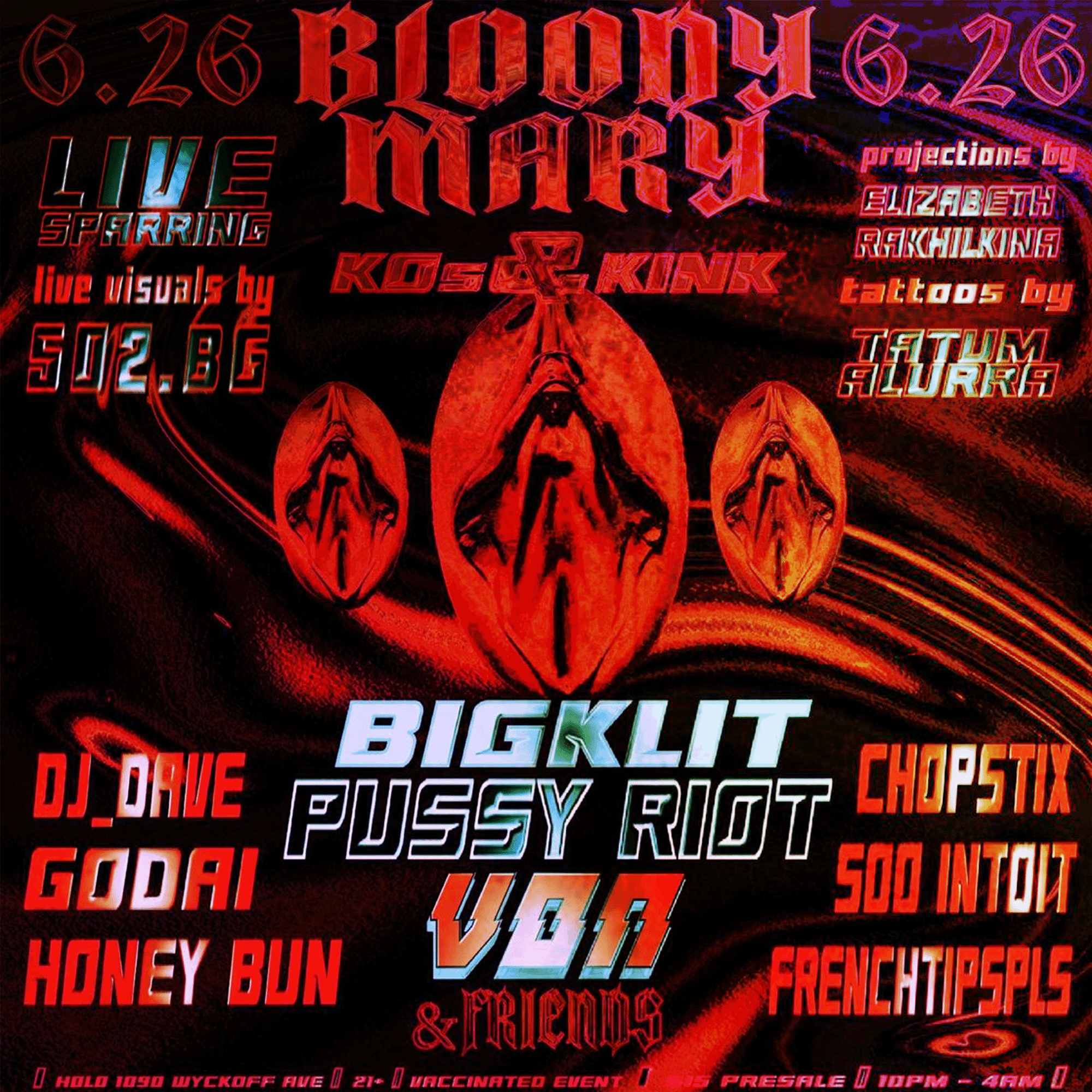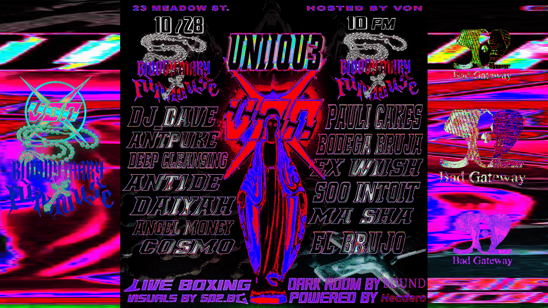 502 turns DJ Dave's Live Code into a cathedral; Motion Capture, Boxing, and Blood for Von's 4th Bloody Mary event.